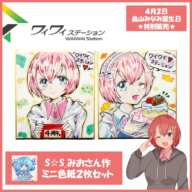 【特別販売】S☆S_みおさん作 手描きイラストミニ色紙2枚セット