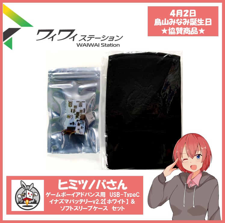【協賛商品】ゲームボーイアドバンス USB-TypeC イナズマバッテリーv2.2(ホワイト)&ヒミツノバオリジナル ソフトスリーブケース セット